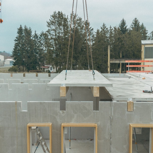 In unseren eigenen Fertigteilwerken produzieren wir individuelle als auch serielle Fertigteile für Ihr Hochbauprojekt.