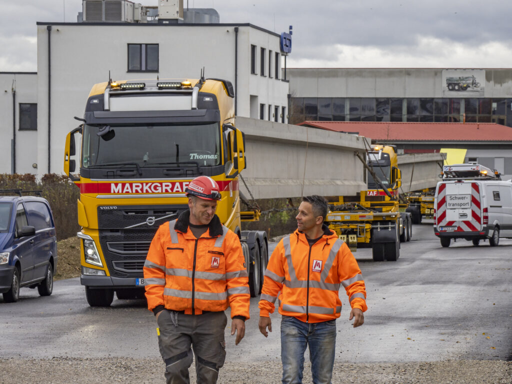 Mit Spezialfahrzeugen und Schwerlastkranen sorgen unsere eigenen Teams für die logistisch perfekte Just-in-time-Montage der Elemente.