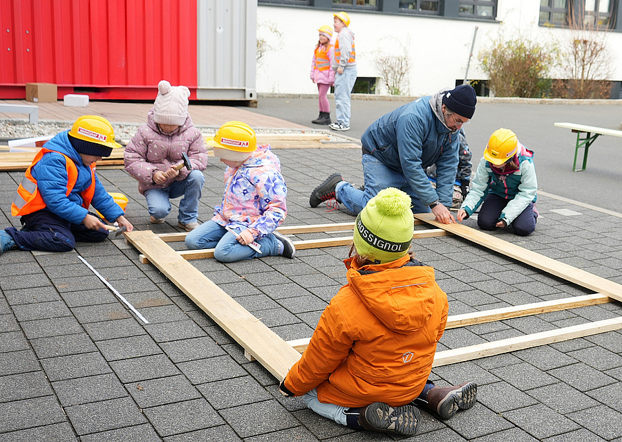 Dieses Jahr wurde wieder fleißig gebaut, getüftelt und gezeichnet! Insgesamt 35 Kinder haben gemeinsam mit viel Kreativität und Teamwork Holzhütten gebaut. Eine Schnitzeljagd führte die Kinder einmal quer durch das Gebäude, vorbei an Mama`s oder Papa`s Arbeitsplatz.