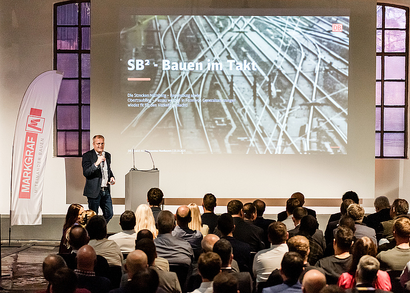 Fachvorträge und Impulse zu aktuellen Themen wie dem Bahnausbau in Nordbayern sowie innovative Ansätze zur Prozessvisualisierung im Tiefbau boten einen abwechslungsreichen Rahmen für den Austausch. Zu den Referenten gehörten unter anderem die DB InfraGO und die BII GmbH. Besonderen Wert legten wir erneut auf den persönlichen Dialog mit unseren Lieferanten und Nachunternehmern. Die partnerschaftliche Zusammenarbeit ist für uns ein zentraler Erfolgsfaktor bei der Umsetzung zukünftiger Projekte im Bahn- und Ingenieurbau. Gegenseitiges Vertrauen, intensiver Austausch und gemeinsames Lernen bilden die Basis für nachhaltige Kooperationen.
