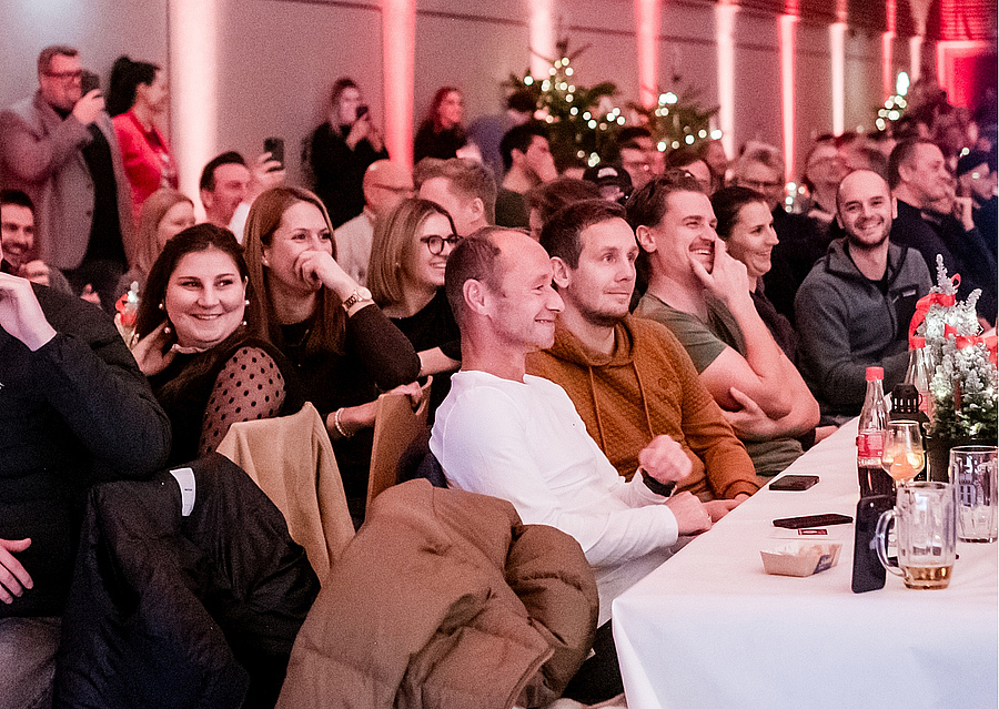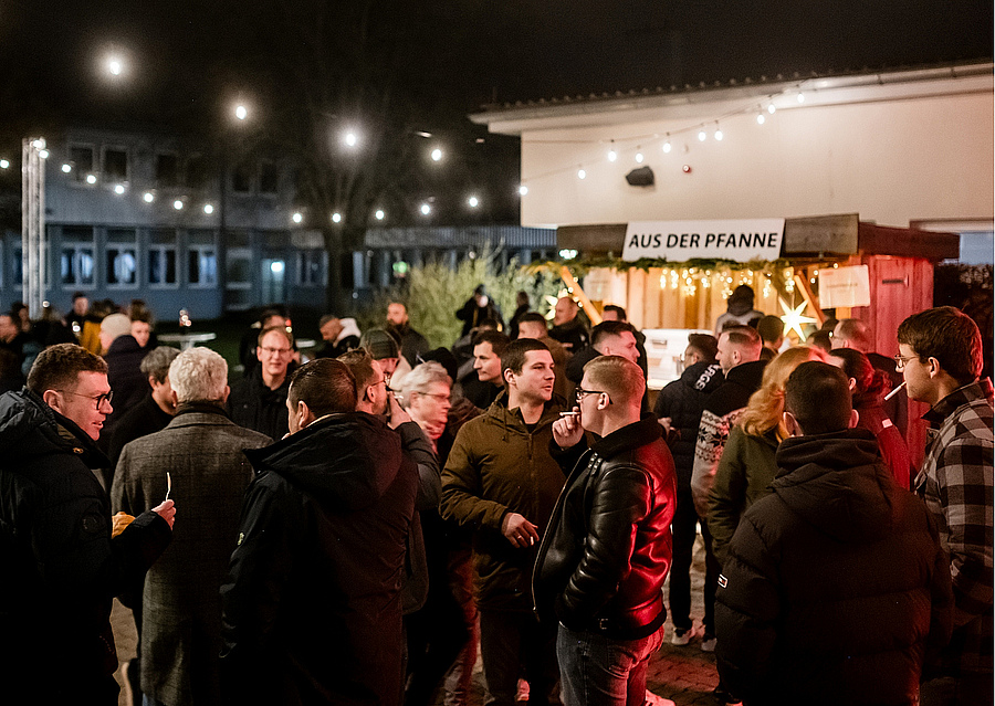 Rund 800 Mitarbeitende kamen zusammen, um bei der diesjährigen Weihnachtsfeier in Kemnath das Jahr gemeinsam ausklingen zu lassen. Ein gemütlicher Weihnachtsmarkt mit Essens- und Getränkebuden sowie gemütlichen Feuerstellen begrüßte die Kolleginnen und Kollegen vor der Mehrzweckhalle in Kemnath. Auch innen ging es weihnachtlich weiter: Die festlich geschmückten Räumlichkeiten versetzten alle sofort in Weihnachtsstimmung und boten den perfekten Rahmen für ein gemütliches Zusammenkommen. Für zusätzlichen Spaß sorgten Spielstationen, an denen Geschicklichkeit und Kreativität gefragt waren.