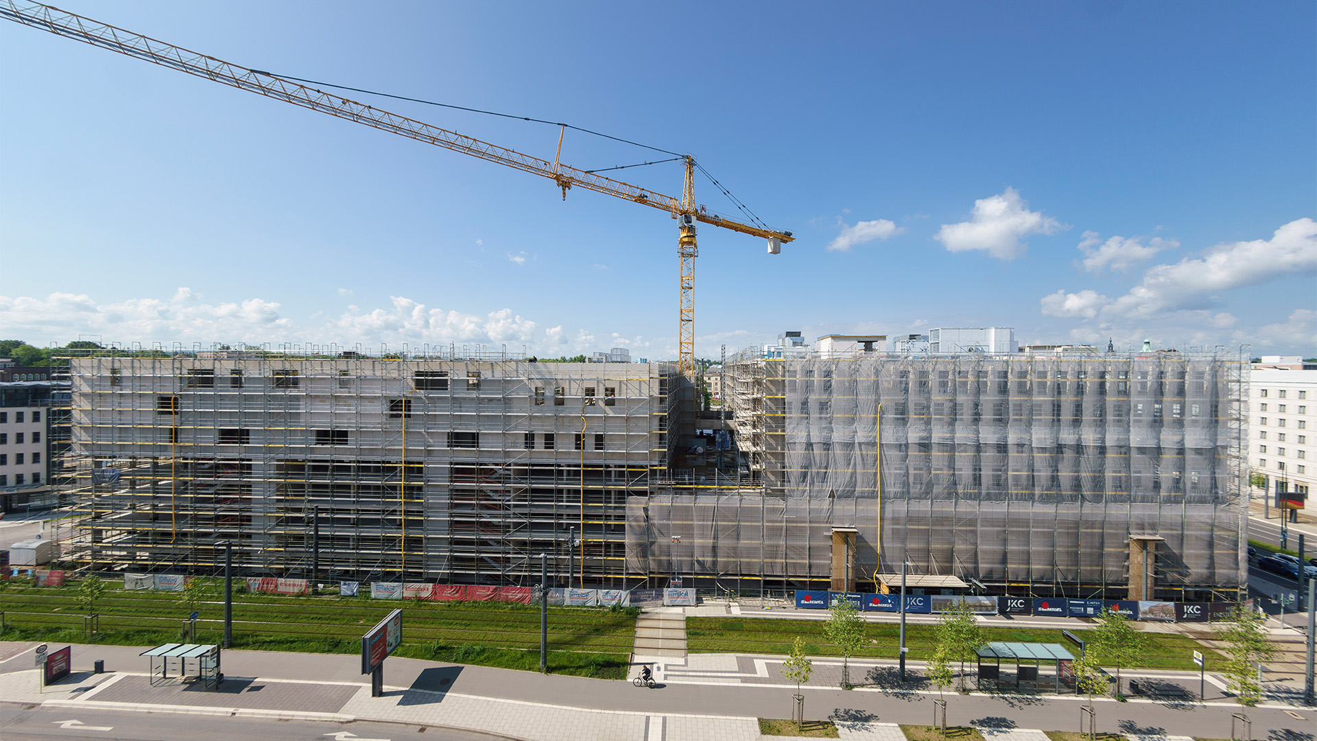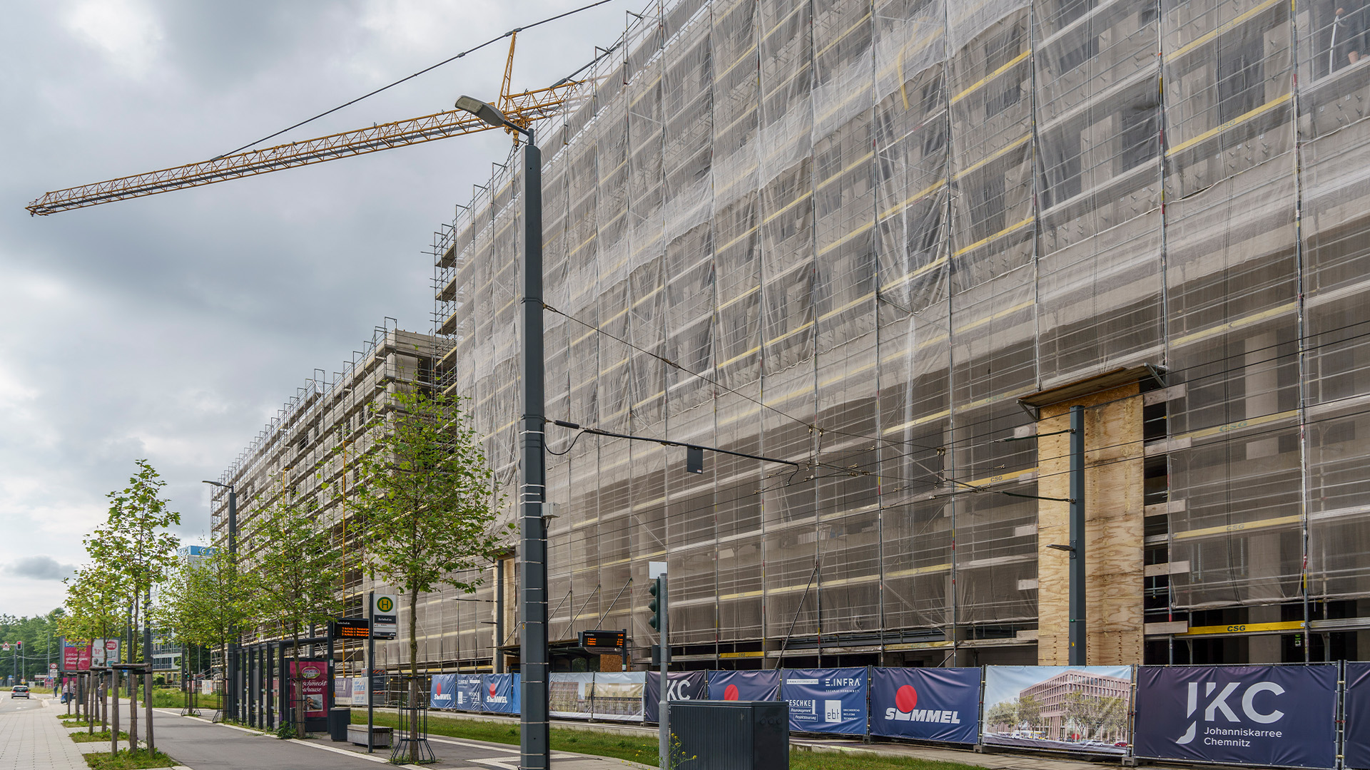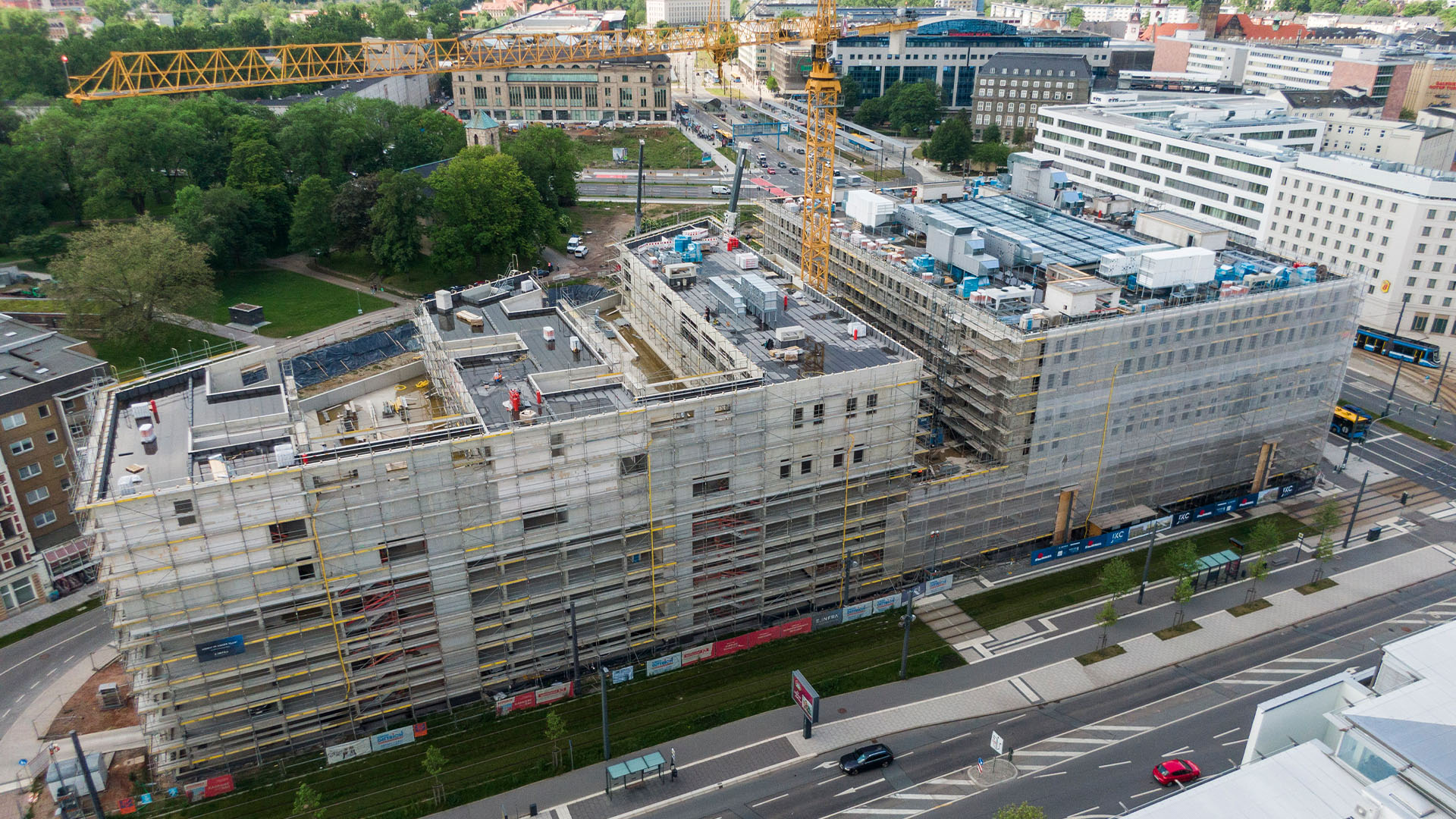 In Chemnitz entstand ein modernes Wohn‑ und Geschäftshaus, das Wohnen, Handel und Gewerbe auf effiziente Weise miteinander verbindet. Das Gebäude umfasst großflächigen Einzelhandel sowie flexibel nutzbare Büro‑ und Praxiseinheiten, ergänzt durch attraktive Wohnflächen. Ein angeschlossenes Parkhaus mit 330 PKW‑Stellplätzen erhöht die Nutzerfreundlichkeit.