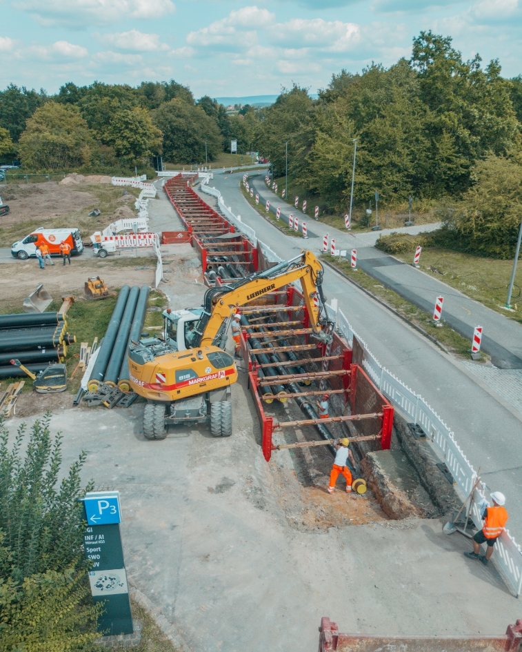 MARKGRAF bereitet die optimalen Rahmenbedingungen für erfolgreiche Bauprojekte. Wir erschließen beispielsweise Wohn-, Gewerbe- und Industriegebiete und bündeln dabei unsere Kompetenzen aus dem Tiefbau sowie Leitungs– und Straßenbau.